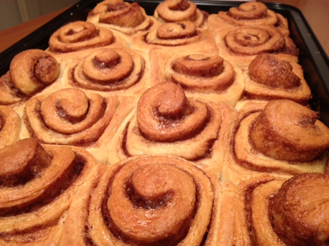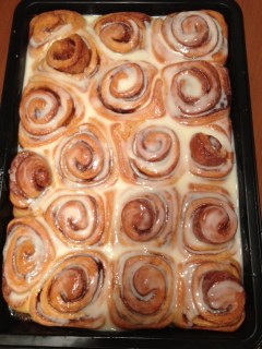 Unser Wochenende war gefühlsmässig eher durchwachsen und so dachte ich: da muss ein ganz besonders süßer, leckerer und kalorientechnisch völlig unvernünftiger treat her. Und so kam ich auf die Idee meine ungarischen Kakaoschnecken http://tezukuri-cooking.blogspot.com/2012/01/ungarische-kakao-schnecken.html in amerikanische Zimtschnecken umzuwandeln. Das Rezept ist immer noch ganz einfach, man braucht halt einfach ein wenig Zeit und deutlich mehr Fett und Zucker (typisch Amis halt :-)).
