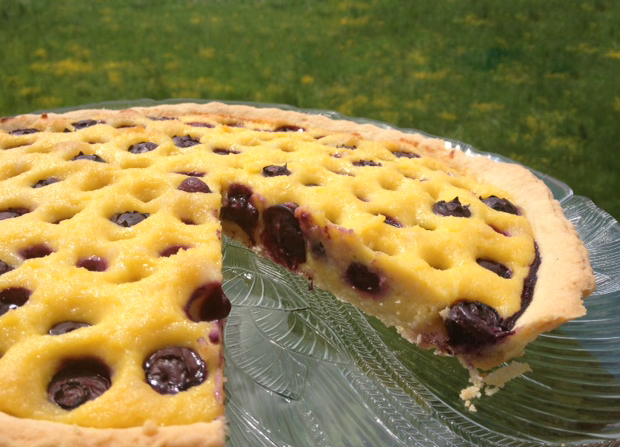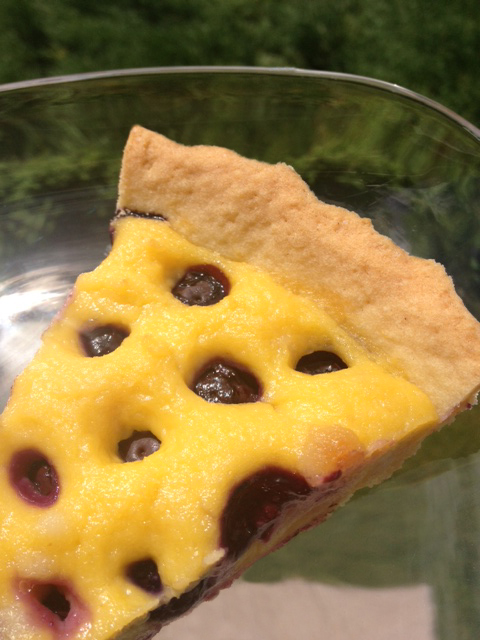Nun diese Masse auf dem blind gebackenen Tarteboden gleichmässig verteilen – und die Blaubeeren darauf verteilen. Optisch finde ich es ganz schön, wenn man die Blaubeeren schön in den Teig hineindrückt, aber ihr könnt sie auch einfach nur obenauflegen.