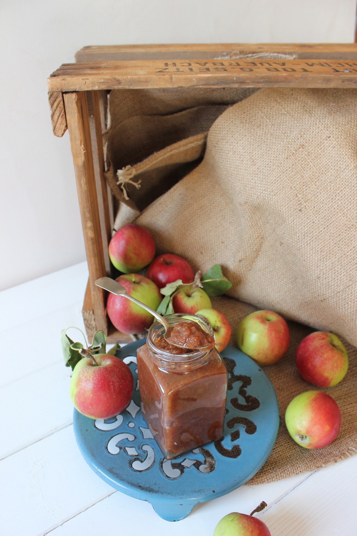 Im Topf auf möglichst niedrigster Hitze für gut 2-3 Stunden köcheln lassen, auf keinen Fall zum Kochen bringen. Das Ergebnis, dass ihr erreichen möchtet, sind ganz zerfallene Äpfel, deren Textur an Apfelmus erinnert.