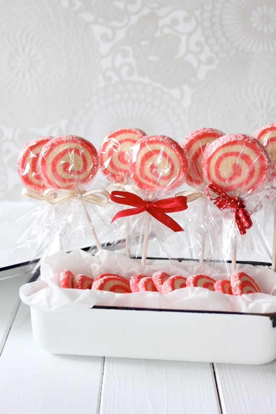 Ich habe ein paar dickere Scheiben abgeschnitten und Lollipopstiele hineingesteckt und so mitgebacken. Optisch macht das echt was her und Kids finden es besonders toll, ihre eigenen Kekslollis zu haben. Wenn diese dann auch noch schön verpackt sind, verschönern sie jedes Geschenk als kleiner Hingucker.