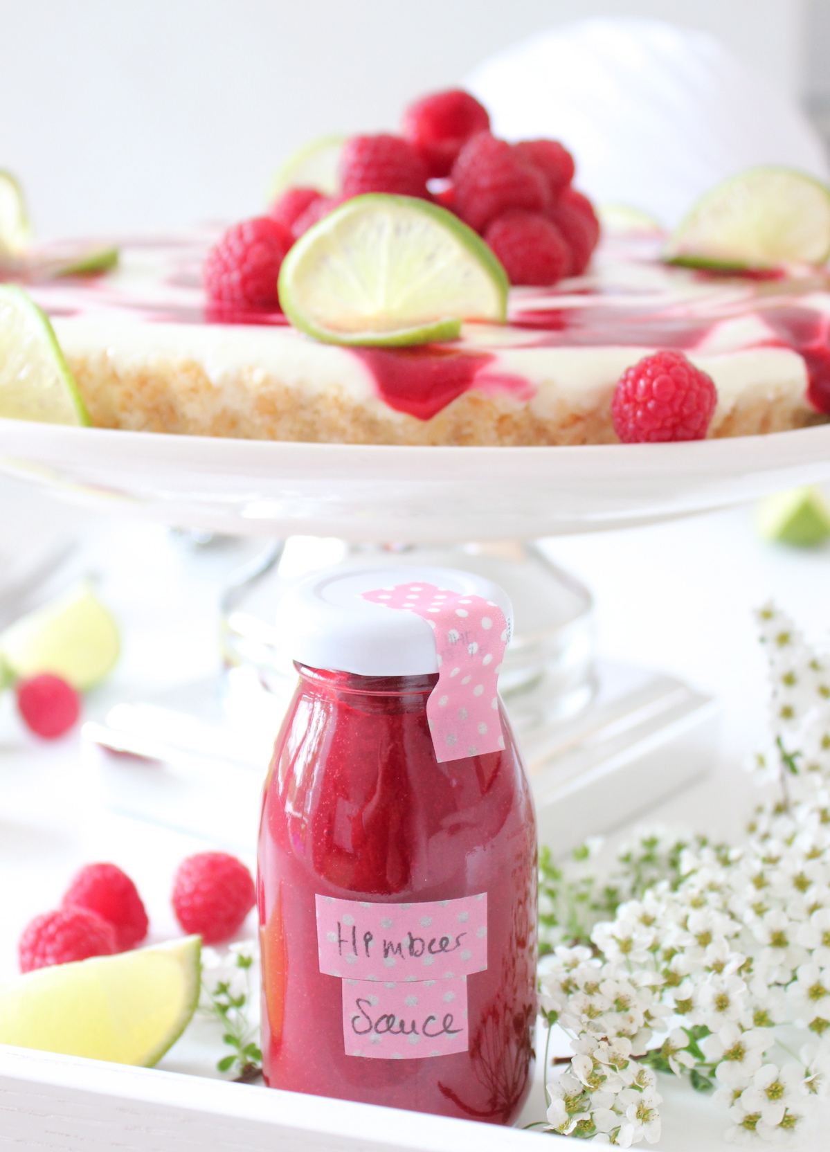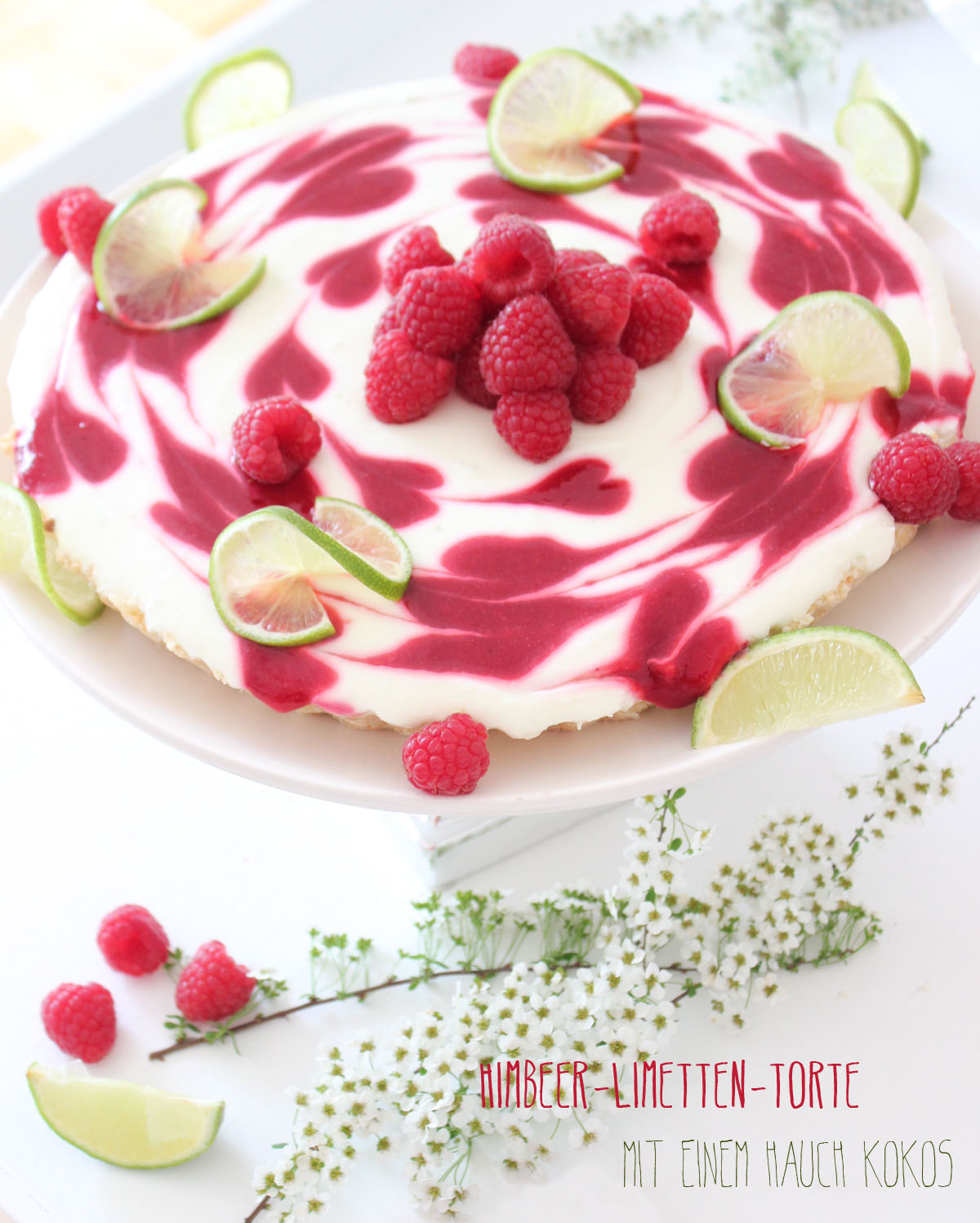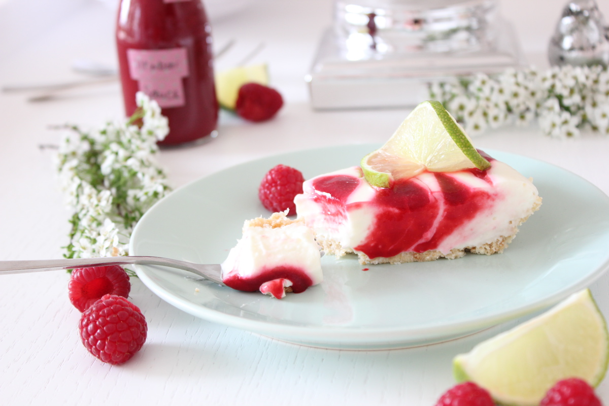 Der Boden ist so schön saftig und schmeckt ganz dezent nach Kokos. Die Creme ist säuerlich erfrischend, mit einem Hauch Limettengeschmack und die Himbeerkleckse fruchtig süß – eine perfekte Kombination für warme Tage.