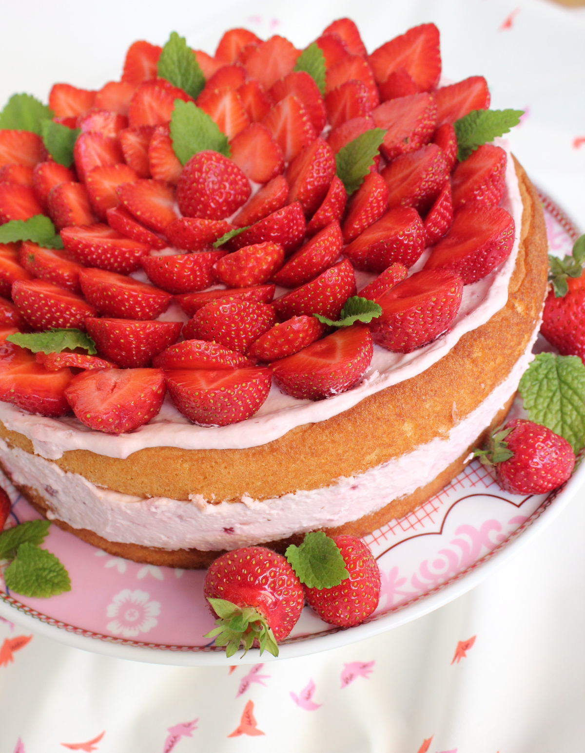 Diese Torte ist der Star auf jeder Sommerparty: locker leichter Bisquit, erfrischend fruchtig und nur dezent süß in der Creme und dazu noch die extra Portion Erdbeeren mit dem besonderen Twist dank der Minze… definitiv ein Rezept, dass in der Beliebheitsskala ganz weit oben ist.